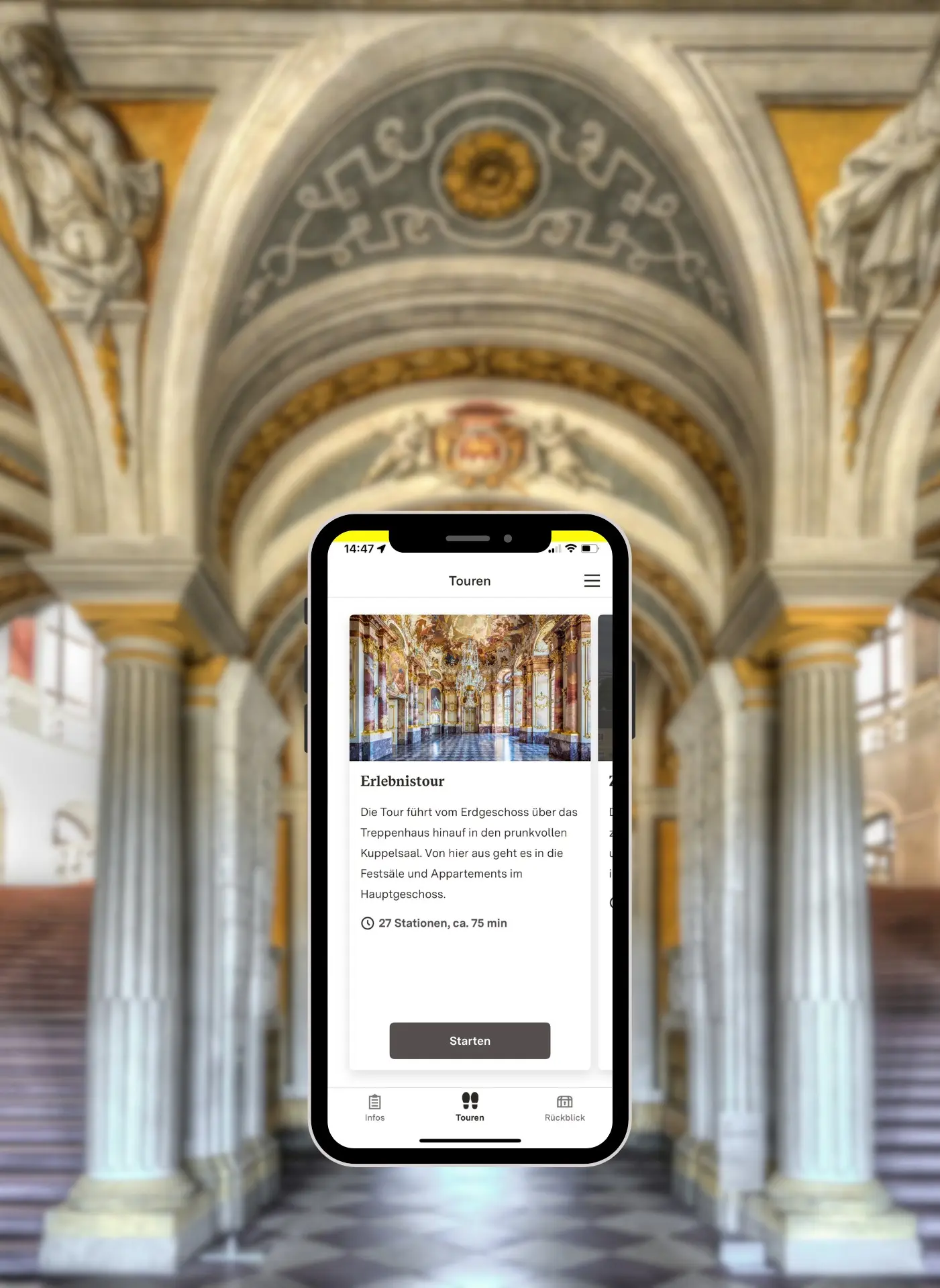Laden Sie sich die App und die Erlebnistour vor Ihrem nächsten Besuch auf das Smartphone und entdecken Sie Schloss Bruchsal ganz individuell. Nach Ihrem Besuch können Sie sich in der App weitere Monumente des Landes anschauen und Ihren nächsten Ausflug planen.