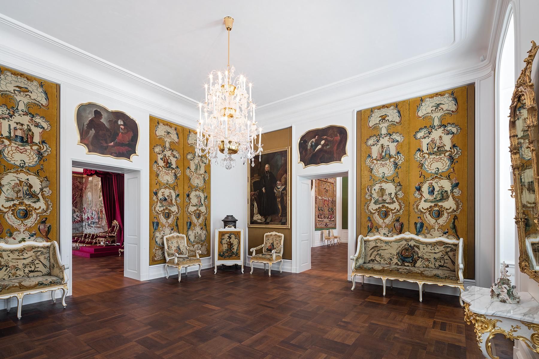 Schloss Bruchsal, Mobiliar und Wandbehänge mit exotischen Motiven